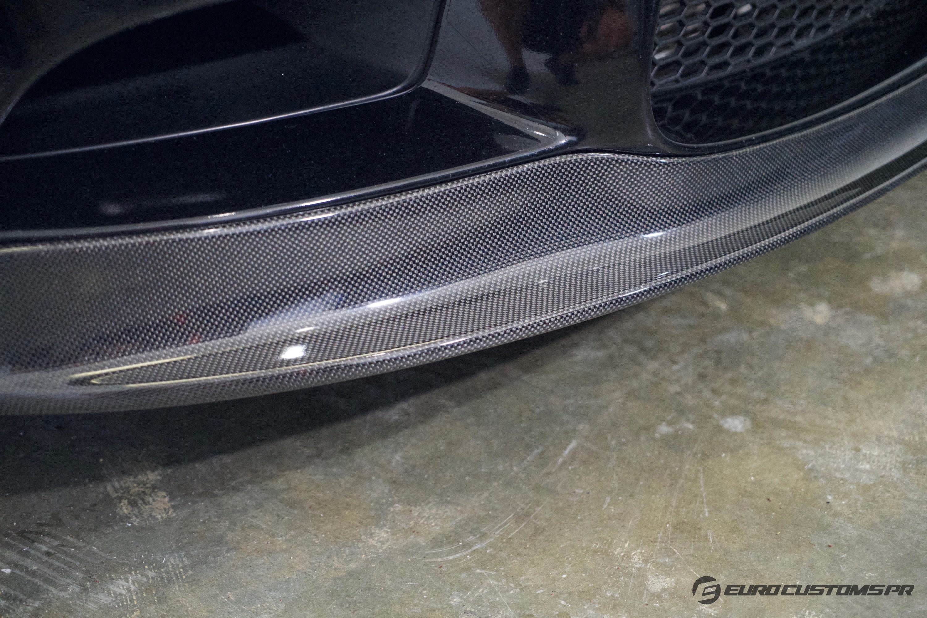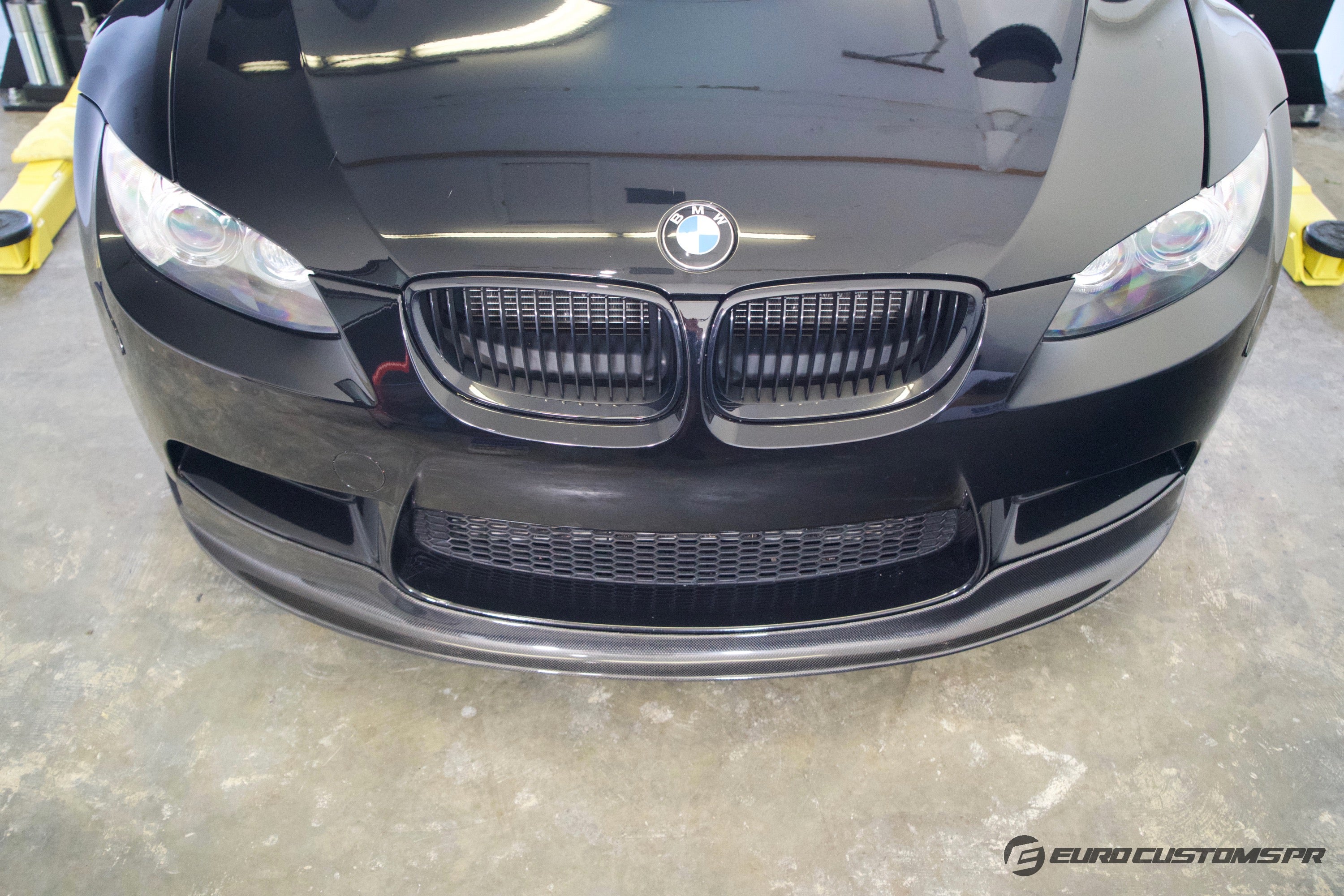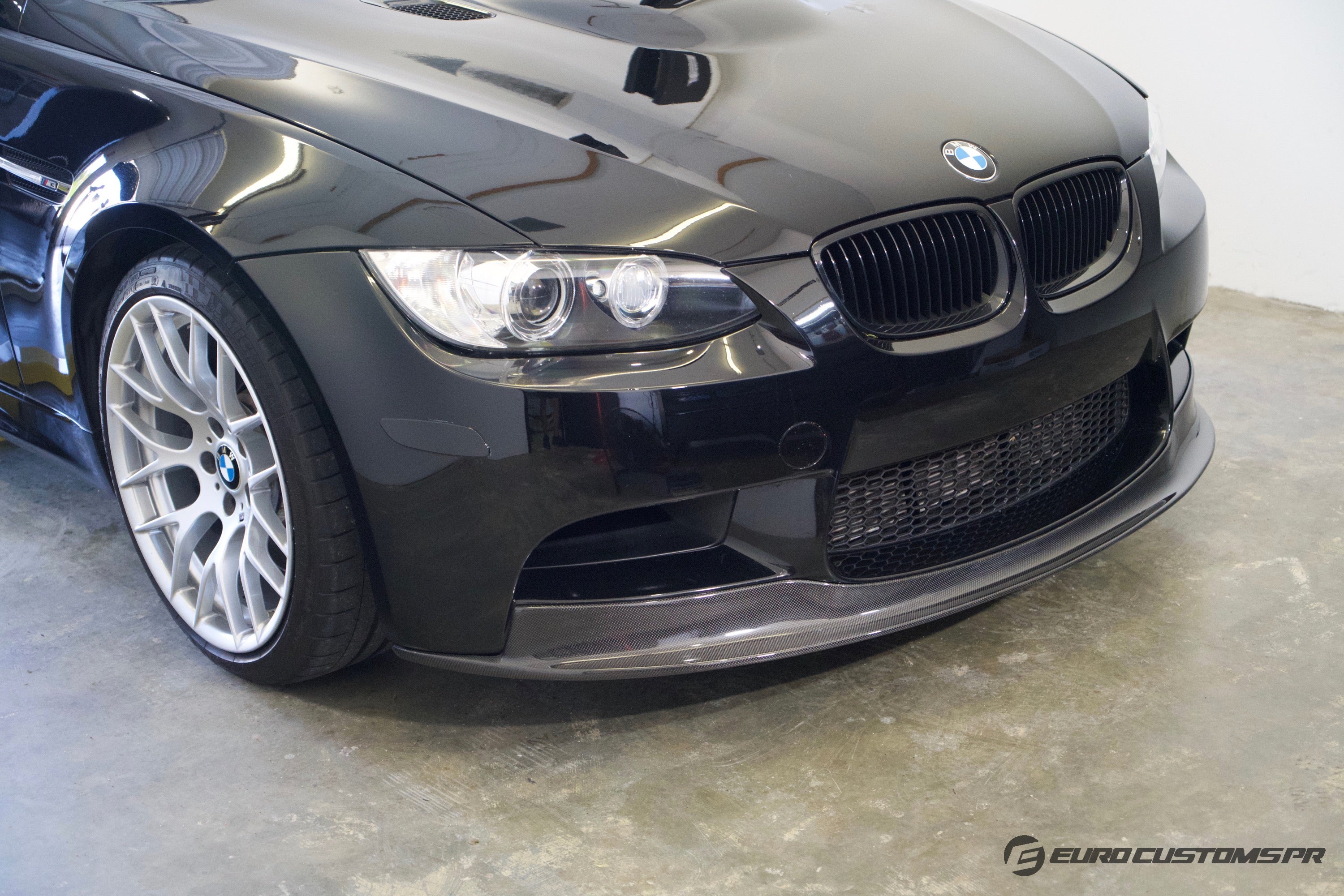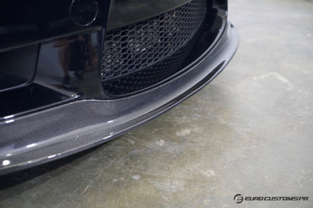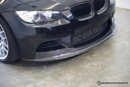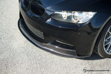 Liven up the front end demeanor and stance of your BMW M3 with this Carbon Fiber CSL Style Front Lip. As with all of our products this front lip features flawless carbon fiber construction that's topped off with a clearcoat to minimize potential damage from road debris, and make sure there is no discoloration over time. This product fits 2008-2013 BMW M3 (Sedan, Coupe, Convertible) with the factory front bumper. Makes a great addition to any vehicles that have the carbon fiber roof option, or have other carbon fiber accents such as grilles, mirror covers, or a spoiler. This front lip has 1x1 carbon fiber construction, the same type your carbon fiber roof has (if you have it).