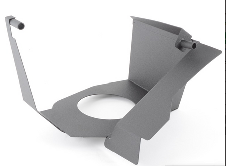 - One-piece housing with a 16-gauge powdercoated heat shield