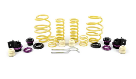KW H.A.S - Height Adjustable Spring kits are a great alternative to conventional springs. You can adjust the height of your vehicle with the KW height adjuster. These kits are ideal for cars with either stock type shocks or the factory EDC - Electronic Damping Control - shocks, as the factory EDC system is retained. This lowering solution from KW optimizes the dynamic performance and steering behavior while still using the factory EDC system. This kit contains vehicle-specific adjustable spring seats with adjusting KW lowering springs. This complete conversion allows an individual adjustable lowering solution.Â