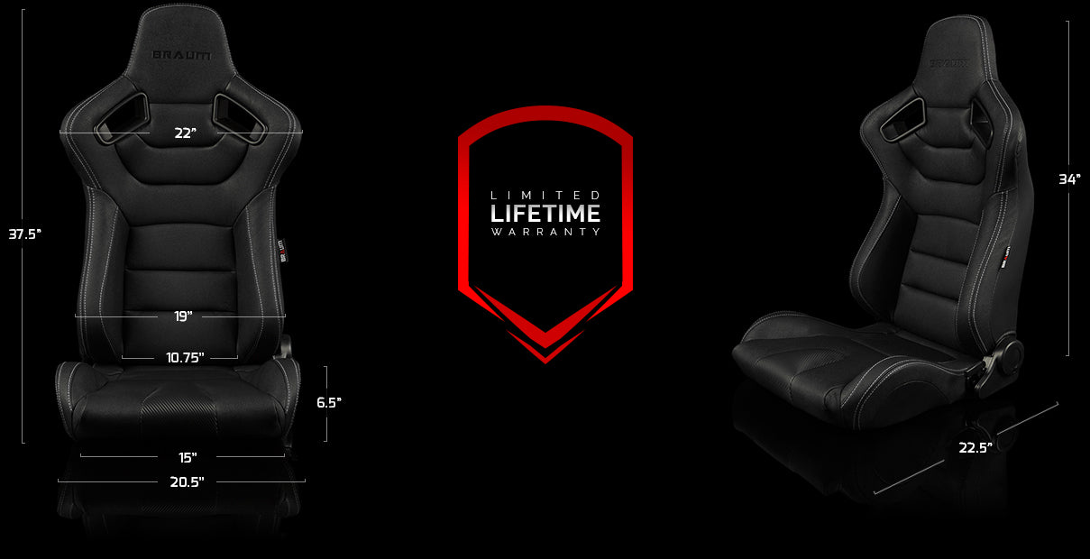 The Elite Series are exclusive, all-new reclinable racing seats from the up-and-coming innovator of racing equipment: BRAUM. These seats are perfect for those who want to improve the looks, comfort and stability of their seats without sacrificing practicality. They feature a strong, lightweight tubular frame and injection molded foam for the ultimate combination of comfort, performance, and durability. The bolsters are pronounced and strategically shaped without being intrusive, so you can stay locked in and enjoy your drive without dreading the discomfort of ingress and egress that a fixed bucket seat would impose. The firm, high density foam provides excellent support while its heat and pressure sensitivity allows the cushion to soften and comply with your body’s shape for a more customized fit.
