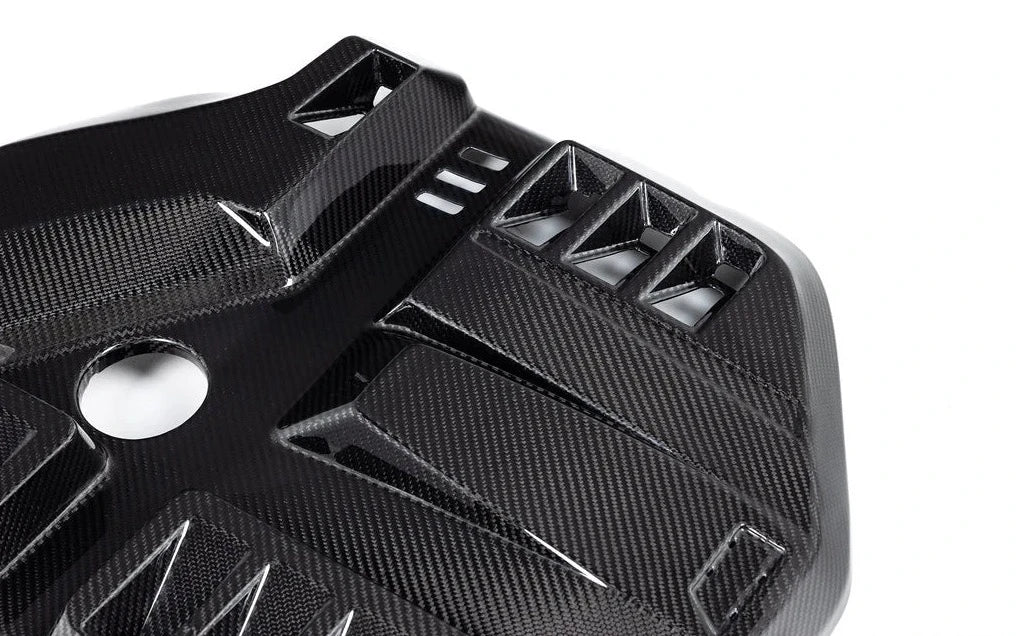 The BMW M2/M3/M4 is one of the flagship vehicles from the Munich stables and so deserves to have an engine bay that looks as good as it performs. With the OEM cover leaving the engine bay looking unfinished, Eventuri redesigned it to bring much needed symmetry and give the engine a more complete aesthetic. The new engine cover extends across the charge-cooler while still allowing for sufficient heat dissipation with added venting. Crafted from prepreg carbon fiber, Eventuri's engine cover is a direct replacement using the OEM mounts.
