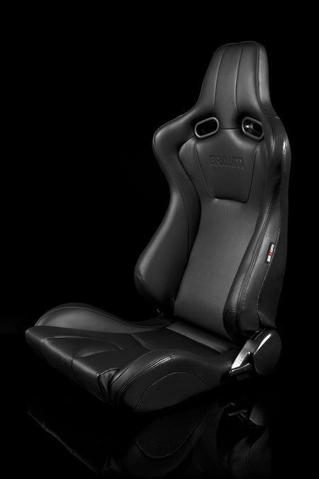 For those who tower above the average driver in height and performance, the VENOM series racing seats are the perfect fit. As the tallest seat in BRAUM’s lineup, the VENOM series seats offer BRAUM’s typical combination of style, support, and comfort, but in a form factor well suited for the 5’10” and above crowd. But make no mistake—the seats’ long shoulder bolsters are designed to accommodate shorter drivers as well; along with gentle thigh bolsters, they provide the perfect balance between the support you demand at the track and the comfort you need on the street. A powder coated high-strength tubular frame keeps you locked firmly in place while the injection molded foam, with its goldilocks-firm cushioning, provides the comfort you need for your long commute. The handlebar-type reclining mechanism allows for OEM-like, quick and easy reclining for the perfect seating angle. Choose between sleek and luxurious black or red leatherette, or high friction and breathable cloth, perfect for staying cool and firmly seated at the track.
