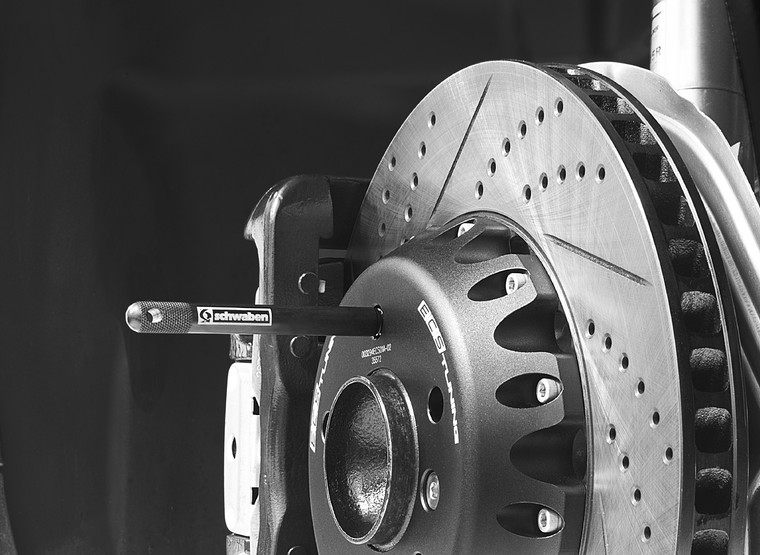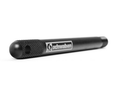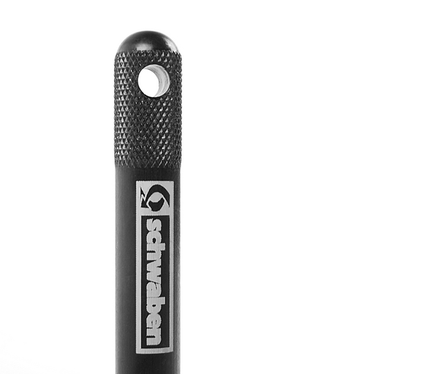 Longer, lighter and easier to use, our aluminum wheel hanger makes it easy to remove and install wheels. Just thread the hanger stud into a wheel bolt hole and hang the wheel safely while you rotate tires or remove them for service or vehicle repair. (It's also great for keeping wheel bolt holes aligned on cars with spacers.) Â Our improved hanger is made of 6061-T6 aluminum, anodized for hardness and good looks. The knurled, non-slip handle has a drilled hole so you can hang it on a pegboard hook in your garage. Â Better still, order two: one for your garage and another for the emergency tool kit in you trunk.